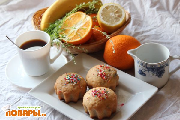 Рецепт подкинула Lilie из какого-то журнала. Делюсь теперь своим опытом приготовления. Сразу скажу, что глазурь по рецепту не вышла (предполагалось растереть сахарную пудру с соком лимона и минеральной водой), она была жидкой, прозрачной, но посыпка к ней прилипла. На форуме есть вариант лимонной глазури, когда взбивается 250 грамм сахарной пудры и 2 лимона (сок) до консистенции сливок. Судя по фото, хорошая выходит глазурь. Попробую ее позже.