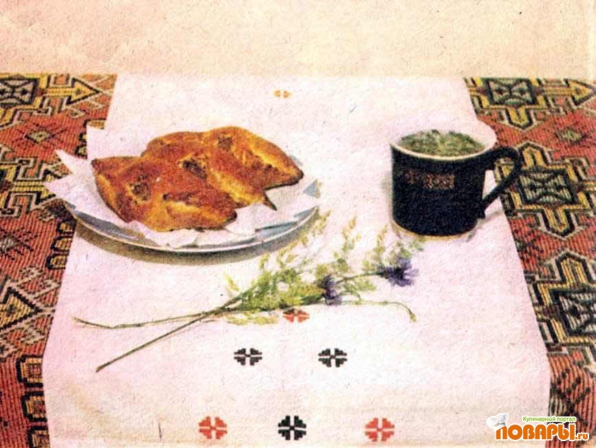 Дрожжевое тесто сформовать в виде шариков и оставить для расстойки на 5-8 мин, затем сделать лепешки, на середину которых положить фарш, придать им форму лодочки, защипывая края «елочкой» так, чтобы середина оставалась открытой.