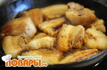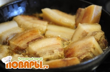 Сало порезать аккуратными кусочками и отваривать (без соли), в течение часа.