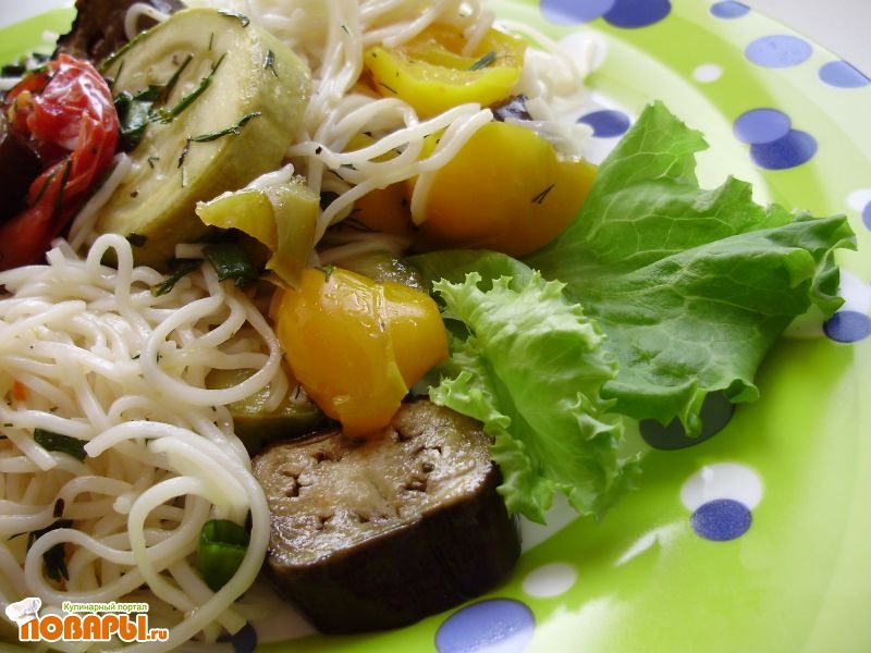 Рисовая лапша с запеченными овощами