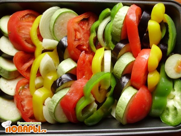 Укладываем слоями овощи в форму.
