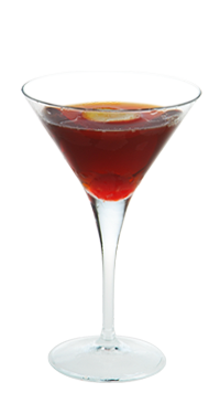 Перелей через стрейнер в охлажденный коктейльный бокал (можно украсить цедрой апельсина)