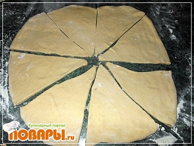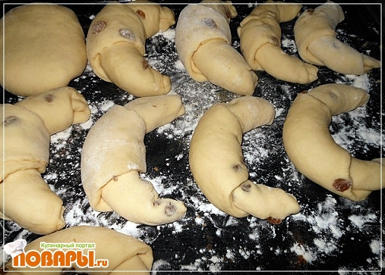 Взять немного теста, раскатать в прямоугольник и выложить ореховую начинку, свернуть тесто с обеих сторон прямоугольника к середине, и потом порезать на кусочки, перекрутить.
