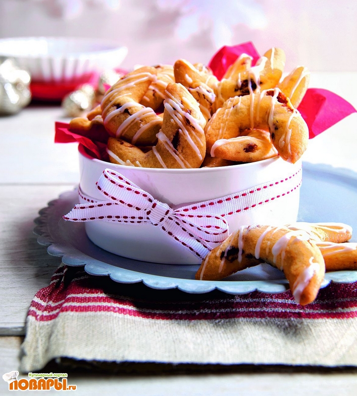 Глазурь: смешать сахарную пудру с ромом или водой и покрыть получившейся глазурью рогалики.