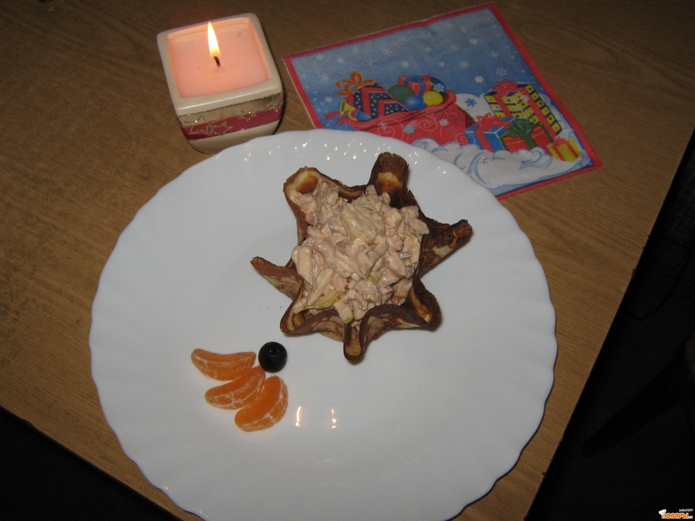 Добавить их к остальным ингредиентам, заправить майонезом, кетчупом, соусом табаско (табаско можно заменить острым красным перцем), посолить по вкусу и всё аккуратно перемешать.