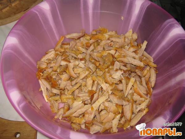 Затем отжать их от лишней влаги и добавить к курице с ананасами.