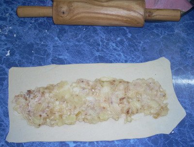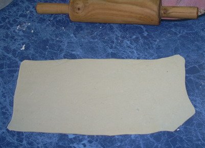 Из указанных продуктов замешиваем эластичное тесто и раскатываем его в форме прямоугольников.