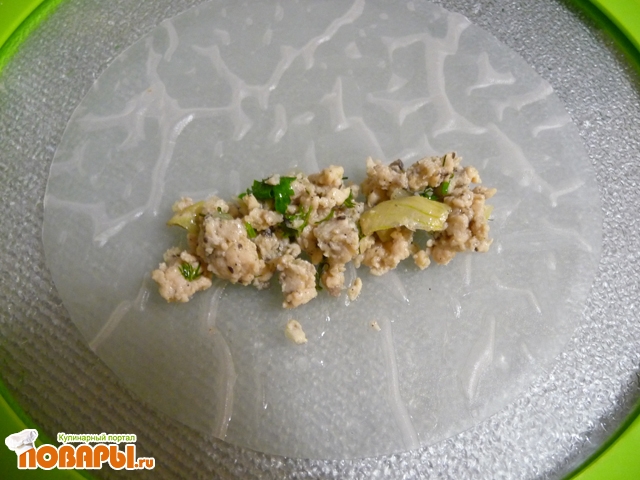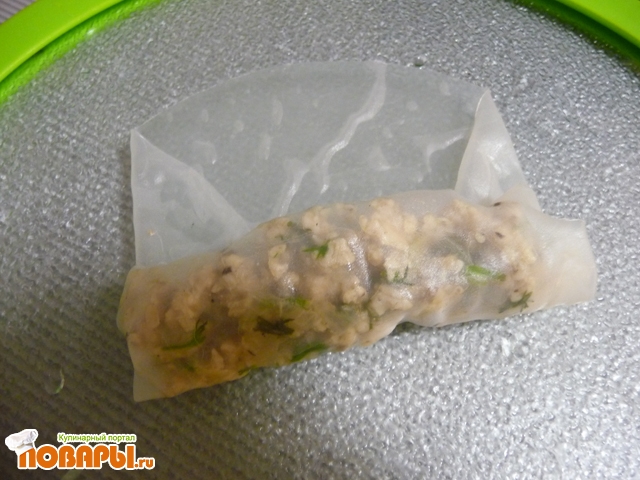 Рисовую бумагу опустить в теплую воду и она должна стать эластичной.