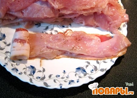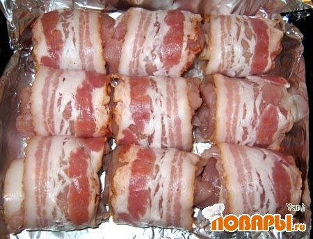 При приготовлении куриных грудок можно столкнуться с тем, что получаемое в итоге блюдо не такое сочное, как хотелось бы. В предлагаемом ниже варианте приготовления рулетиков, благодаря гармоничному сочетанию куриного белого мяса и аппетитного бекона, они получаются нежными и мягкими.