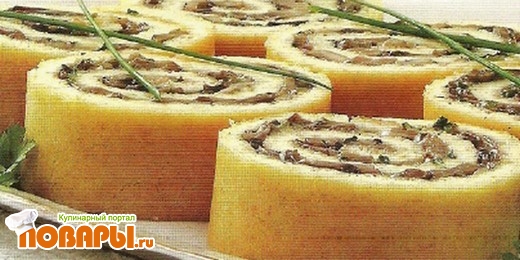 Для начинки мелко нарезанные грибы жарьте на масле 2 минуты, добавьте нашинкованный зеленый лук и жарьте еще 2 минуты. Влейте херес, положите соль, перец, муку, тимьян и сметану. Тушите до загустения. Охладите.