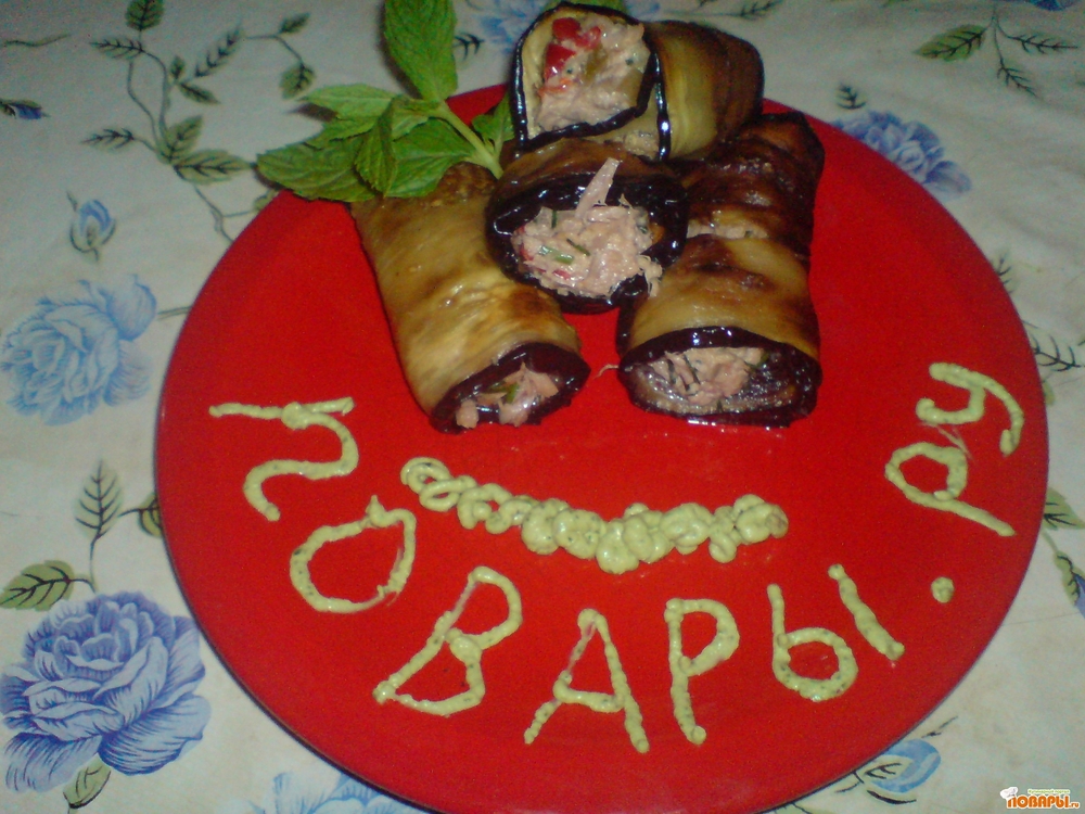 Рулеты из баклажан с салатом из тунца с соусом песто