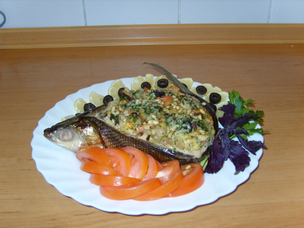 Рыбу почистить и разделать со спины - удалить хребет. Зубочисткой сколоть в конце, получится лодочка.