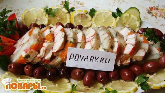 Рыбу нарезаем на небольшие кусочки, нарезаем крабовые палочки кубиками, смешиваем крабовые палочки и рыбку, добавляем специи для заливной рыбы, туда же входит желатин. Если у вас нет такой смеси, то добавьте просто хмели-сунели и столовую ложку быстро растворимого желатина и нарезанную крупными кубиками отваренную морковь