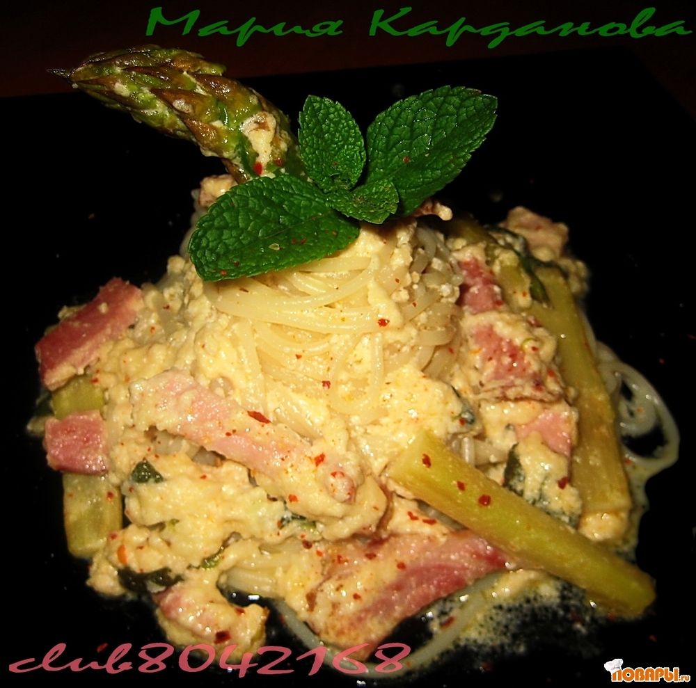Спагетти со спаржей и ветчиной