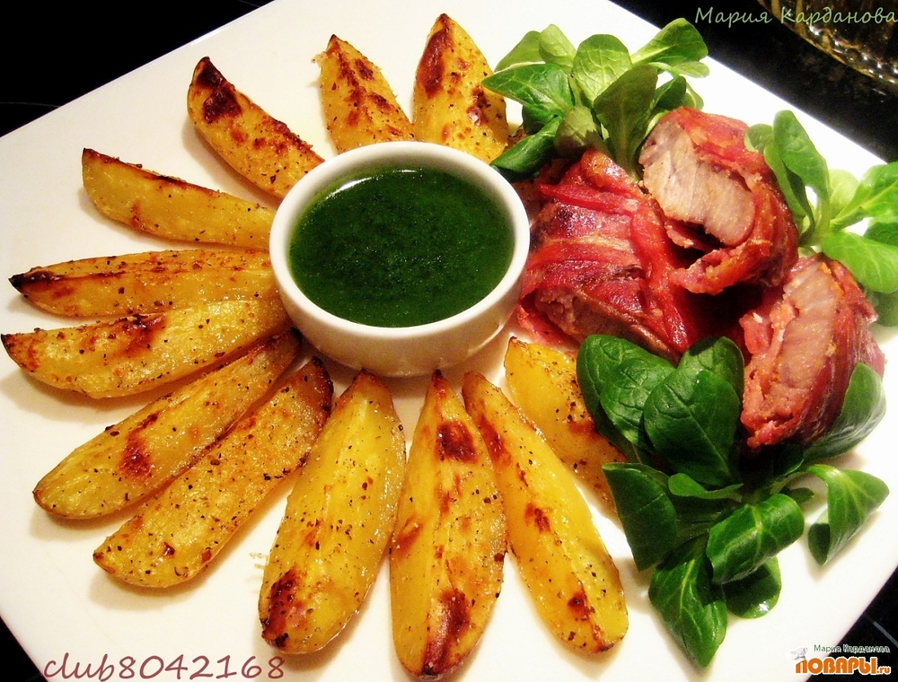 В блендере пробить рукколу с чесноком и 1/3 стакана оливкового масла - это соус в центре тарелки