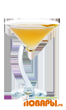 Налей в шейкер: коньяк 30 мл, куантро 30 мл, выжми половинку лимона и наполни льдом