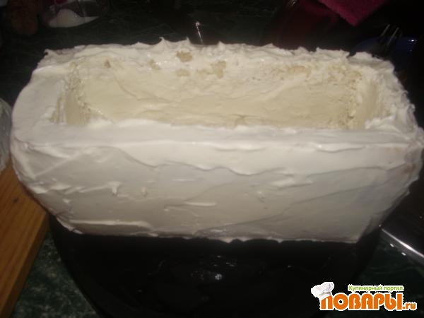 Берем буханку хлеба, аккуратно срезаем крышку, стараемся сделать это не до конца..у меня к сожалению не получилось, сильно отрезала Вырезаем серединку.