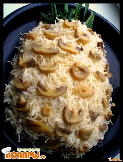 ОтветитьCamelia, сыр я натирала на треке,а потом посыпала салат, а сверху грибы...все, как на фото..