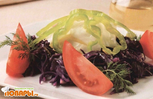 Белокочанную капусту нашинкуйте, положите в кипящую смесь, доведите ее до кипения. Капусту выньте шумовкой, выложите на блюдо.