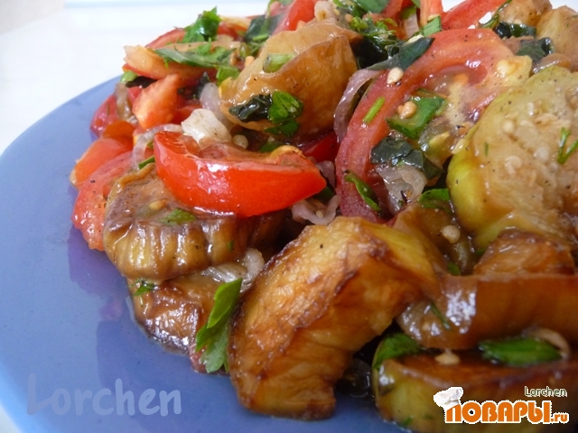 Баклажаны обжарить в растительном масле до золотисто-коричневого цвета.