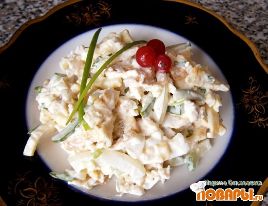 Любителям блюд из яиц этот салат непременно должен понравиться. Блинчики придают салату легкость и особый вкус, а огурчик и зеленый лук - весеннюю свежесть.