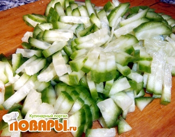 Сыр - тоже соломкой или, как вариант, трем на крупной терке.