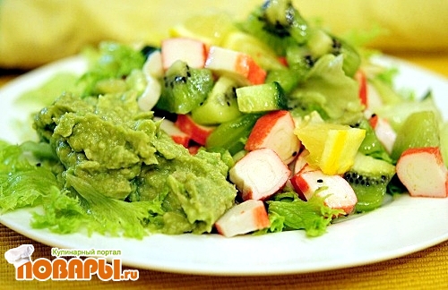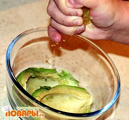 Теперь нам нужно приготовить авакадо. Это будет так сказать соус к нашему салату, его можно будет или перемешать с салатам, или намазать на тостеры и кушать с салатом. Хотя это дело не хитрое и можно вообще не делать соус из авакадо, как говорят «кашу маслом не испортишь».
