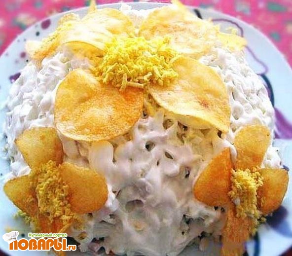 Грибы, если крупные, и ветчину нарезать соломкой, сыр и яйца натереть на крупной терке, морковь по-корейски перерезать на кусочки примерно 3 см. На плоское блюдо выкладываем слоями салат, и каждый слой смазываем майонезом.