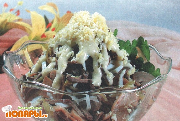 Салат грибной с печенью