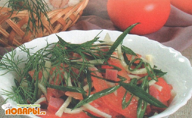 Салат из домашней лапши и ветчины