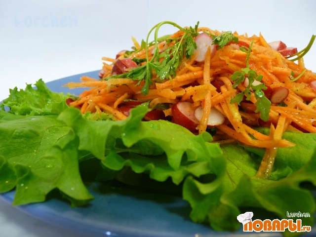 Салат из кресс-салата с морковью и редисом