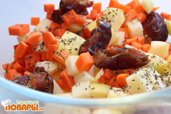 Салат с яблоком, финиками, морковью и петрушкой