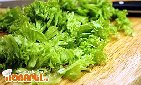 Пока соевый соус нагревается , нам нужно подготовить наш салат к заключительному этапу. Для этого нам осталось помыть и порезать листы салата, чем больше салата тем лучше.