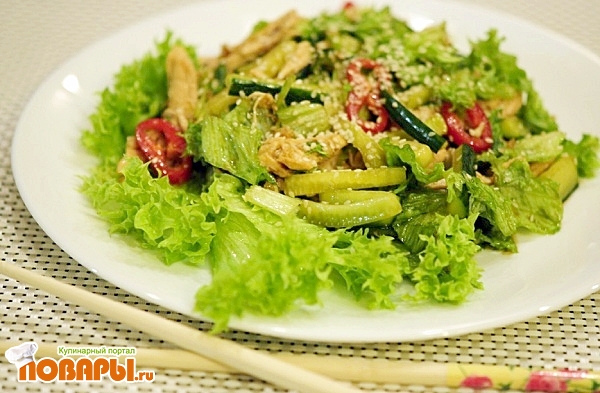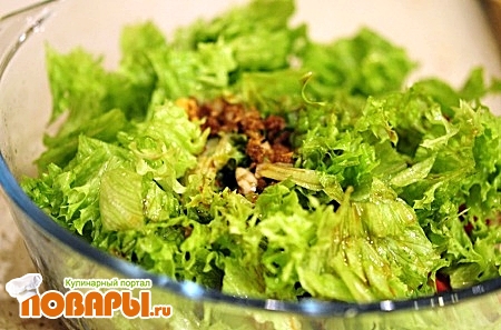 Подавать салат надо быстро и кушать сразу, пока он еще теплый!