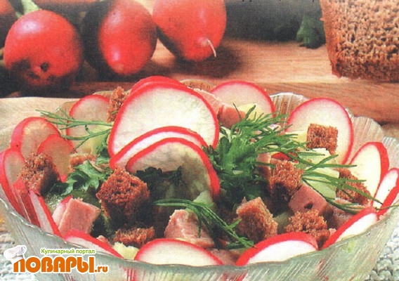 Салат с мясным паштетом и гренками
