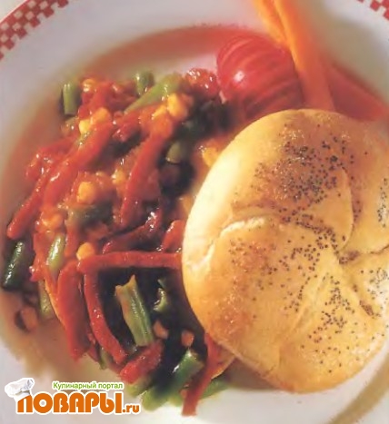 Слегка поджаренный окорок и пикантные овощи подаются на сдобных булочках. Этот великолепный сандвич вполне может заменить гамбургер на пикнике. Вкусный соус барбекю подчеркивает разнообразие ароматов смеси из копченого постного окорока, сочной сладкой кукурузы, зеленой фасоли и зеленого лука.