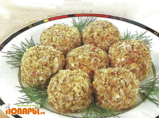 При подаче выложите шарики на блюдо, оформите зеленью.