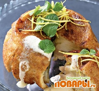 Заполнить форму грушами и изюмом, закрыть оставшимися хлебом, смазать маслом. Запекать при 180 °С 20–25 мин. Подавать теплой с ромашковым кремом.