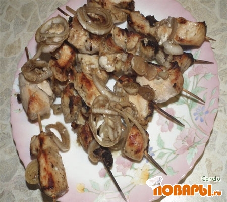 Аккуратно разместить наши шампура с мясом на форме. Желательно, чтобы мясо находилось в подвешенном состоянии.