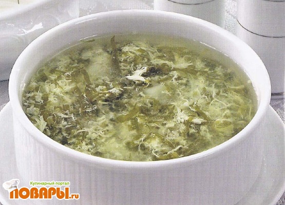 Затем, непрерывно помешивая, влейте яйца, дайте супу еще раз закипеть. Подавайте щи со сметаной, посыпав рубленой зеленью.