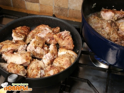 Тушку кролика желательно не замороженного разделываем на средние кусочки и маринуем.