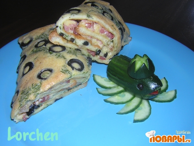 Делаем начинку: мелкопорезанная ветчина, сыр на терке, майонез.