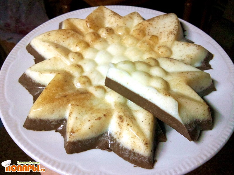 Залить в формочку силиконовую сначала молочную часть, а как застынет залить какао.