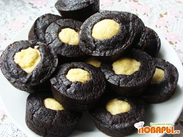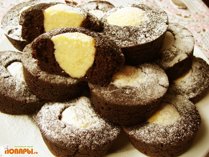 Шоколадные кексы с творожной начинкой