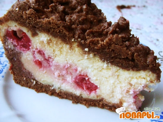 Шоколадный пирог с творогом и вишней