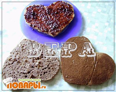 Сердце из песочного теста смазать малиновым вареньем.