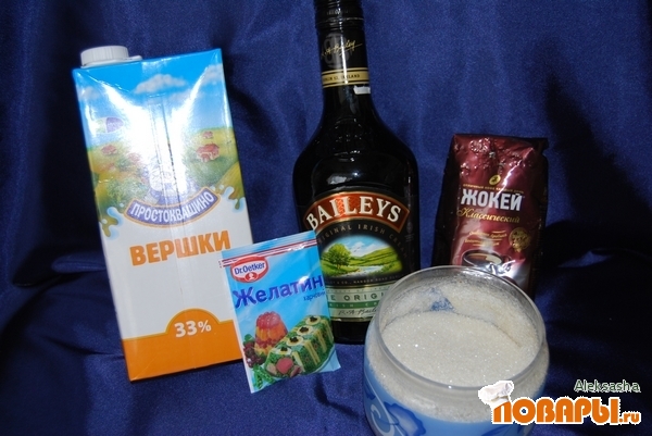 Смешиваем взбитые сливки с сахаром, кофе с ликером, желатин. Ставим в холодильник до полного застывания, затем режим на кусочки и аккуратно выкладываем в креманку.