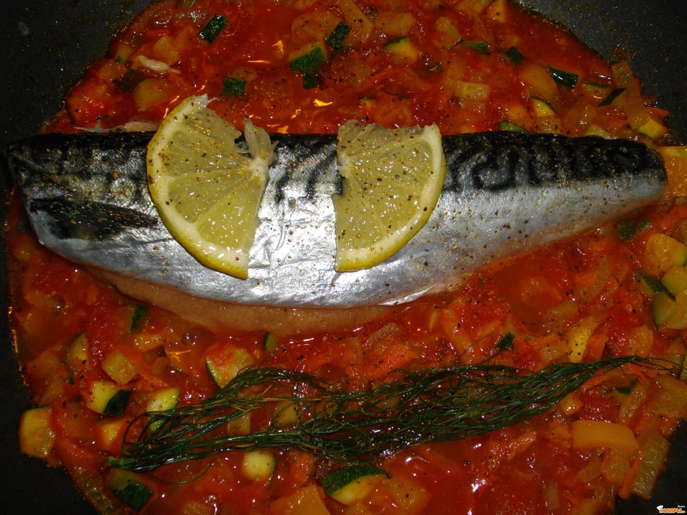 Скумбрия с ворчестерским соусом и овощами