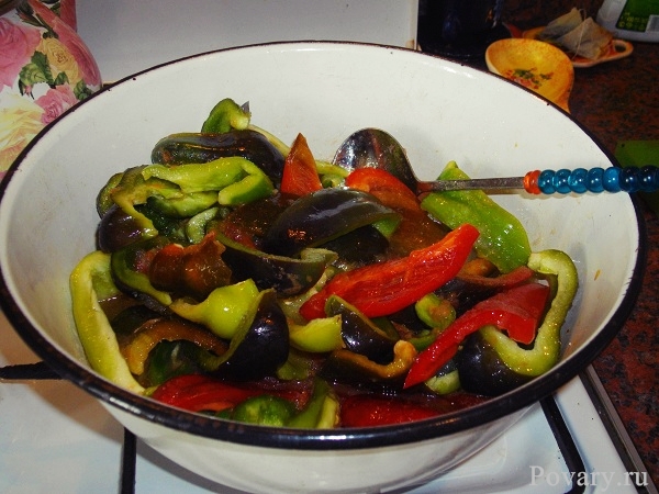 В соус добавить перец, тушить, перемешивая, до размягчения.