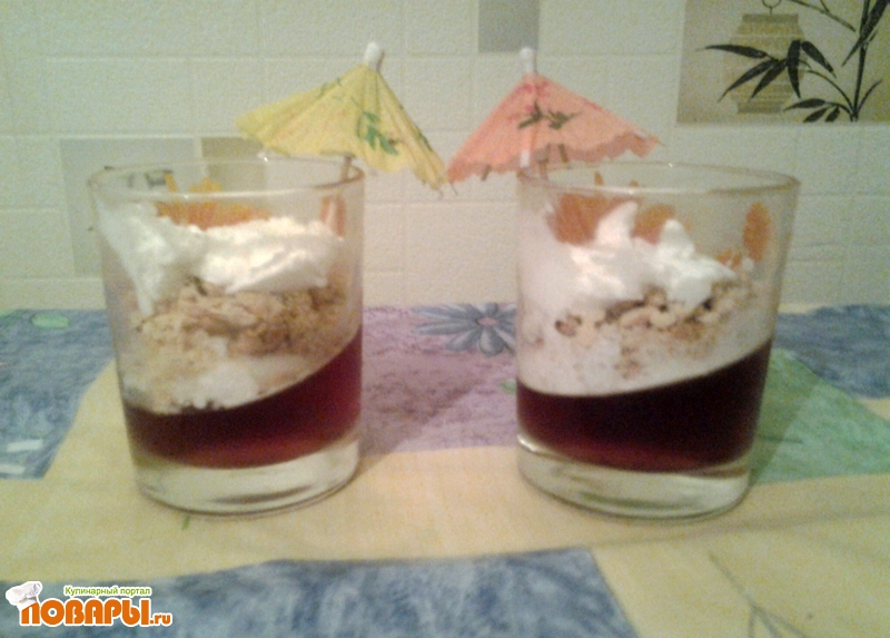 Охладить компот, разлить его в стаканы, поставить в морозильную камеру на 15 мин., подставив под стаканы что-нибудь так, чтобы стаканы были под наклоном.